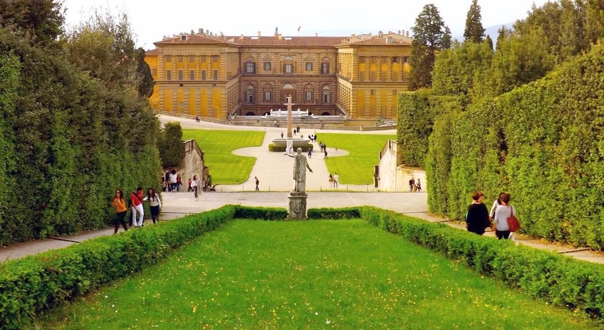 Jardin à la française grew from the French Renaissance garden, a style inspired by the Italian Renaissance garden in the early 16th century. The typical Italian garden is the Boboli Garden in Florence and the Medici Villa in Fiesole characterized by small gardens or small plots designed in geometric layout and placed them symmetrically; combined using fountains and waterfalls that animate the garden, paths, stairs and ramps that change levels by level to each garden, featuring caves, mazes and subdivisions; Statue on the subject of mythology. The gardens were designed to symbolize harmony and order, the ideals of the Renaissance and to recall the virtues of ancient Rome.